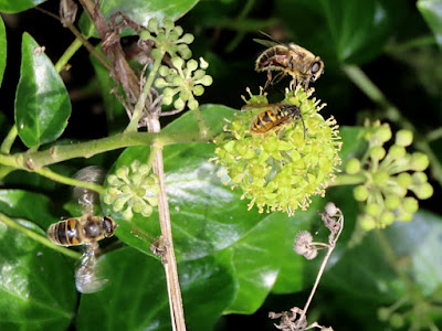 It was a return trip to the cemetery this morning, in the hope of finding a few Ivy Bees. But yet again the flowering Ivy was void of any and instead there were hundreds of hoverflies and wasps "buzzing" about.