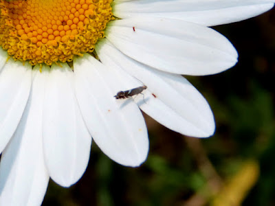 A Cocksfoot Moth (Glyphipterix simpliciella) on an Oxeye Daisy (Leucanthemum vulgare)