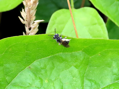 Below are a few photos and a video of a Spined Mason Bee (Osmia spinulosa).